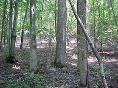 All wooded hardwood and pine trees, slightly rolling. Stream in valley on back of lots